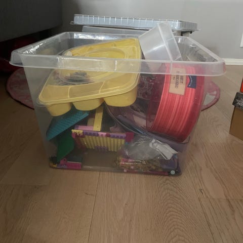 Pieniä legopalikoita ja astia