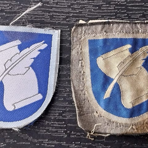 Käyttämätön 80 luvun armeija tarra-pieni taite yläreunassa -kiiltävä "hologrammimainen"reunus.