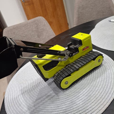 Hyväkuntoinen leikkitraktori. Vähän retro.