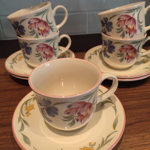 Uniikki käsinmaalattu kahviastiasto, 6 hengen.
