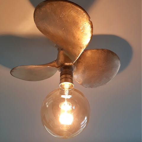 Putputusta ja Liplatusta silmille. Kun alta pitää mahtua ja merelliset valaisimet on se juttu. Tämä vanha potkuri pääsi viettämään eläkepäiviään kattovalaisimena.