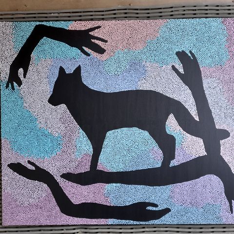 Malakantiikeri, 80x100 kokoinen (cm) akryylimaalaus maalauspohjalle (puukiiloihin kiristetty kangas), ei ole kehystetty. Saa ripustettua seinälle sellaisenaankin ilman kehyksiä.