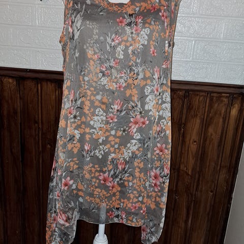 Harmaa / punainen-ruskea kukkatunika (M/40-42)
