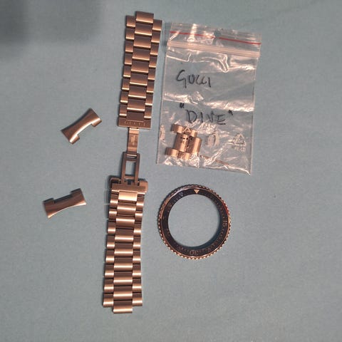 Myyn pikku sokeripalan: Guccin rannekellon. Kellon mitat 14x14 ja paksuus 7 mm. Rannepituus n. 18 cm.