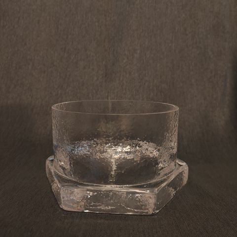 Ruotsalaisen suunnittelijan Gösta Sigvardin (1917-1998) 6-kulmainen Bulten-lasikulho. Valmistaja Lindshammarin Lasitehdas.