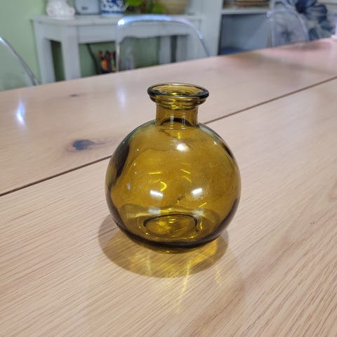 Kuvan mukainen näyttävä iso lasinen maljakko, vaikka tuliaislahjana kera kukkakimpun