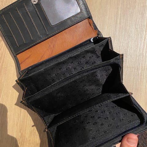 Eksterin alumiininen hopean värinen lompakko mihin mahtuu 6+ korttia. Lompakon toisella puolella on myös klippi käteistä varten tai kortteja ja toisella vain kortteja varten. Pieniä naarmuja/käytön jälkiä löytyy