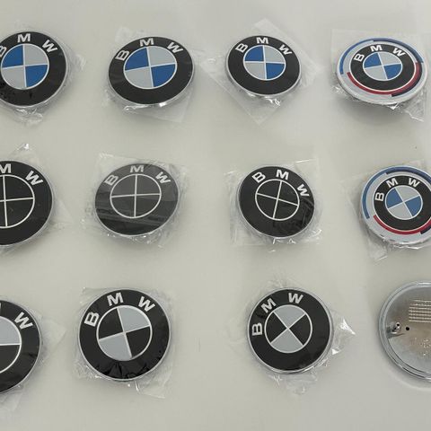 Keulaan ja takaluukkuun 74mm, 78mm ja 82mm, sinivalkoisia, mustavalkoisia ja täysmustia. Myöskin muutama 50th anniversary.