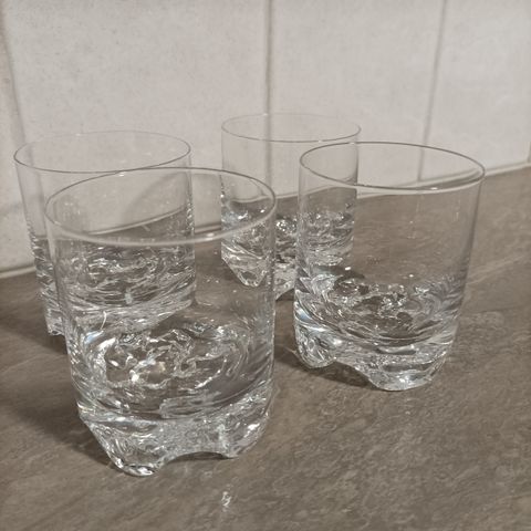 Tapio Wirkkalan suunnittelema Gaissa-sarjan lasi. Korkeus 8,5 cm, halkaisija 7 cm. Hinta 20 e/kpl tai 3 kpl yhteensä 50 e. Sarja edelleen myynnissä Iittalassa.