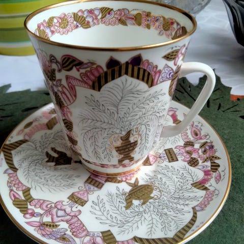 Koko setti sisältää 4 kpl kuppia ja 5 kpl aluslautasia (tassi).