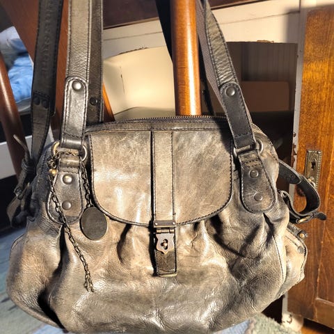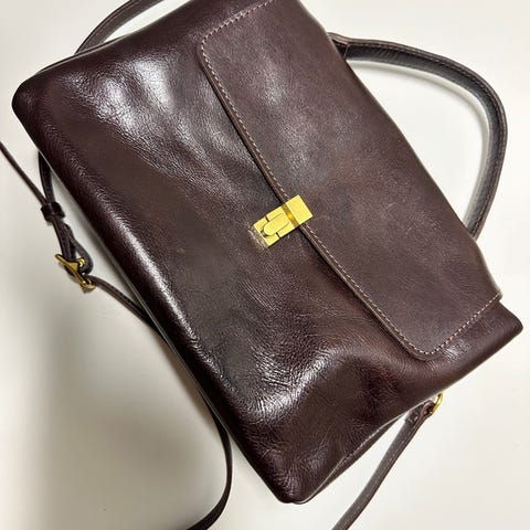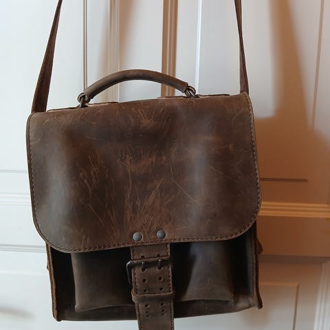Aitoa nahkaa. Tilava beigen värinen aunts & uncles olkalaukku.