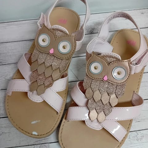Vaaleanpunaiset Kengät, joissa kiiltävällä langalla tehtyjä koristeita, tarrat, koko 34, kumipohja, mitta kärjestä kantaan 21.5 cm, ehjät