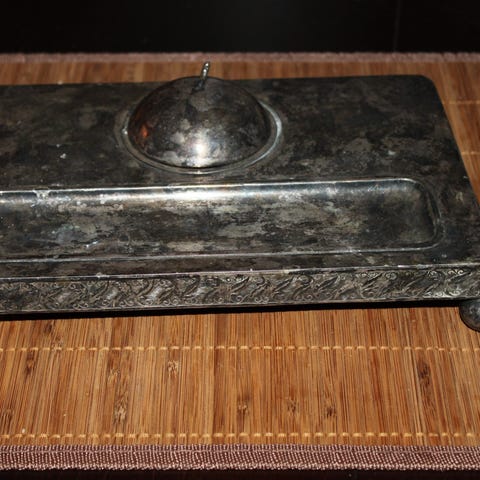 Myydään hieno, antiikkinen mustesäiliö / (sulka)kynäteline.
