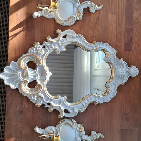 sisustus, sisustustavarat, sisustusesineet, koriste, koriste-esine, koriste-esineet, muu sisustus, kynttilänjalka, kynttilänjalat, seinälampetit, seinäkoriste, seinälampetti, kynttilälampetti, kynttilälampetit, seinäkoristeet, lampetti, lampetit, kaksi kynttilänjalkaa, seinälampettia, peili, peilit, peililampetit