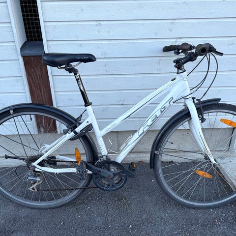 Laadukas ja kallis aikoinaan ollut hybridi. Ei ole joskus ollut säältä suojassa, niin pultit ruostunut. Toinen käsikahva puuttuu, tästä huollon kautta hyvä pyörä.