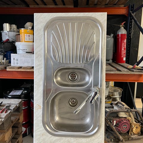 Keskikokonen allas kahdella altaalla, syvyys 61,5cm, leveys 100cm, ei jalkoja.