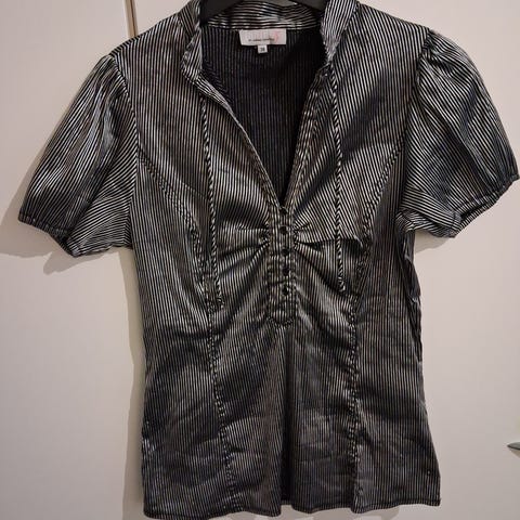 Vanhankullanvärinen, vai olisiko hapettunut pronssi oikeampi väri määritys, juhlapaita tai -toppi. Design Anna Liisa Buur. Toppi on rypytetty ompeleilla edestä, molemmilta sivuilta ja takaa. Toppi on vuoritettu Toisella sivulla saumassa vetoketju. Olkaimet leveimmältä kohdalta olkapäiltä 11cm leveät. Koko 40 (M/L). Kainalo-kainalo n.50cm. Pituus olalta helmaan n.53cm.