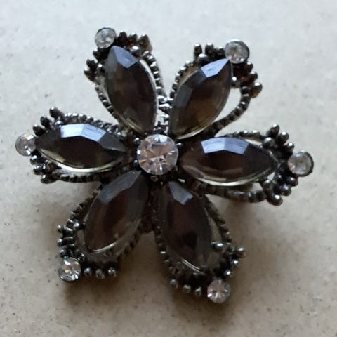 Värikäs rintakoru. Huom!! Yksi strassi puuttuu. Voin postittaa.