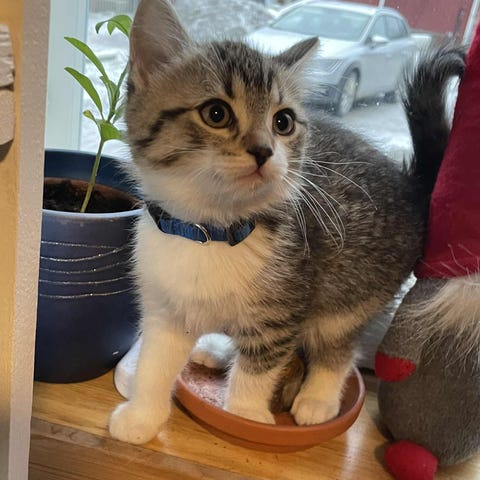 Vaalea urospentu Tupu on rohkeampi, todellinen saalistaja ja ahkera ikiliikkuja, mutta myös sosiaalinen ja viihtyy muiden kissojen sekä ihmisten ja lasten seurassa. Kun Tupu tulee viereen kehräämään, hän valloittaa kyllä kaikkien sydämet katseellaan ja olemuksellaan.