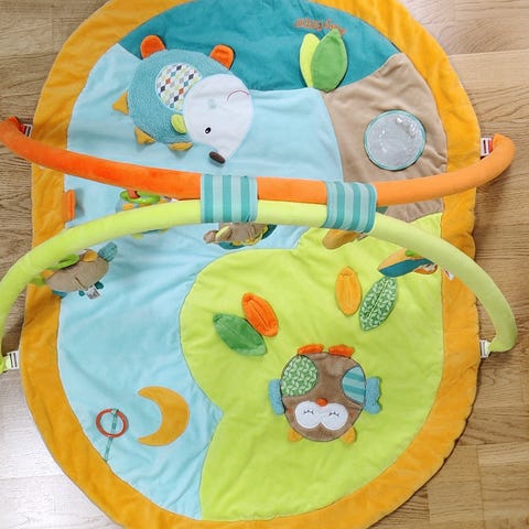 Söpö lelumatto ja lelukaari vauvalle. Pehmeä materiaali veluuri. Lelukaaren Voi irrottaa. Merkki baby fehn. Haku käy myös Porvoon keskustasta.