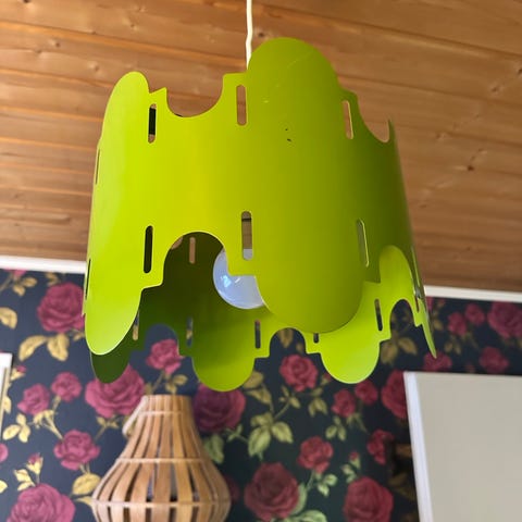 Katri Oikarinen chandelier paperivalaisin lime. Mitat: 40x 28cm. Sisältö: 1kpl paperinen valaisin, 2kpl valaisimen kiinnitysosia, 1kpl extra kiinnitysosa ja kokoamisohje. Uusi ja käyttämätön. En kokoa kuvaamista varten, koska en tiedä saisinko valaisinta enää siististi samaan pakettiin. Ja valitettavasti en tiedä onko missään kuvaa valaisimesta valmiina.