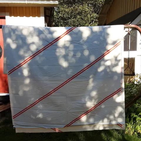 Kangas on pesty myyntiä varten, mutta ei silitetty koska oletan uuden omistajan haluavan pestä kankaan ennen käyttöä.