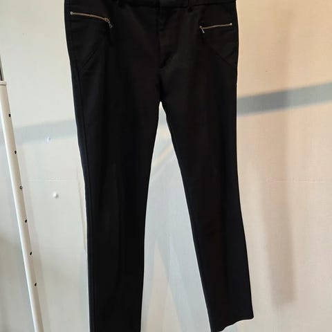 Zaran mustat suorat housut, joissa valkoisia pilkkuja. Lyhyt malli, haara-lahje 70 cm. Todella laadukasta kangasta ja käytännössä käyttämättömät. Savuton ja kotieläimetön talous. Voin postittaa , kulut 7.90 € ostajalle. Toridiilikin käy.