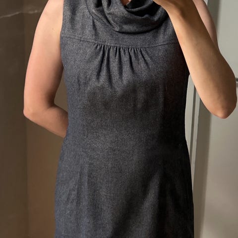 Hyväkuntoinen ja siisti villasekoitemekko kokoa 36/38. Voit käyttää pitkähihaista paitaa mekon alle. Mekko näyttää hyvältä saappaiden kanssa.