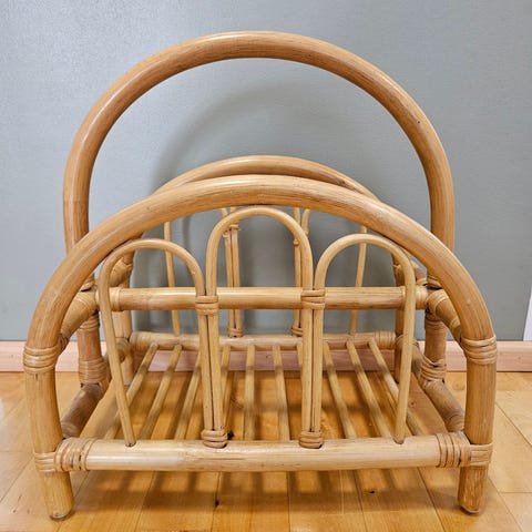 Rottinkia ja mustaa metallia oleva lehtikori pitämään lehdet järjestyksessä