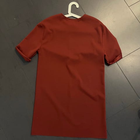 Zara mekko, koko 36. Eri kangasta ylä ja alaosat. Hameen edestä menee viistoon sauma.