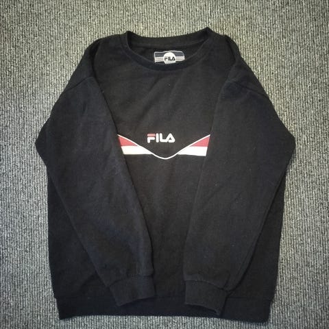 Siistin oloinen Filan college. Lähemmin tarkasteltuna joitakin heikosti erottuvia tahroja ja hihansuut parhaat päivänsä nähneet. Menee vielä kuitenkin arkikäytössä. Saatat saada myös jonkin muun ostoksen kaupanpäällisiksi tai vaikka suklaapatukkaa vastaan.