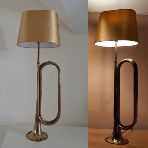 Tämä vanha Fanfaari-torvi pääsi eläkkeelle musiikki hommista ja soittaa nyt iloa valon muodossa. Musiikkia silmille, kierrätystä ja uusia käyttötarkoituksia.