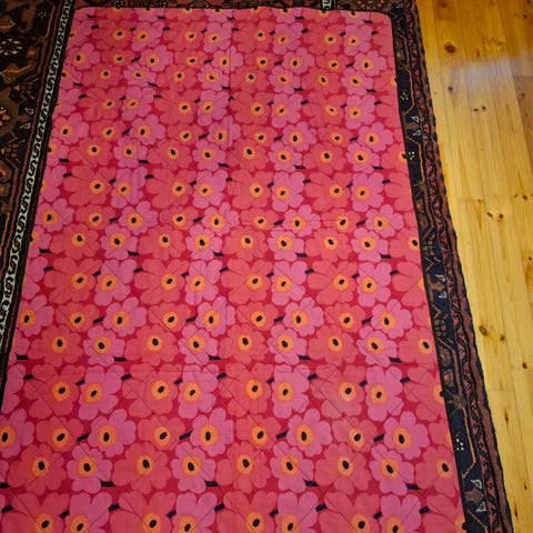 Pellavapuuvillainen beessi peitto. Siisti, sohvakäytössä ollut.