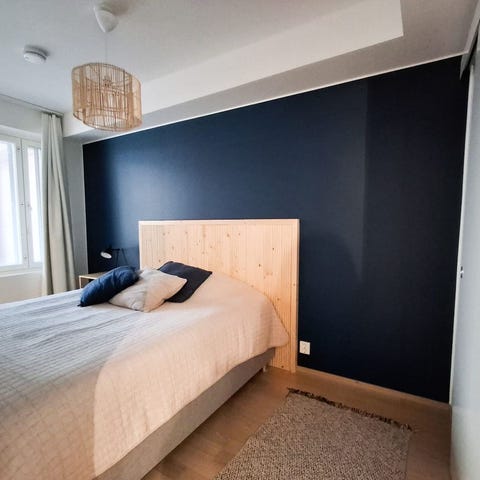 Uusi kotimainen runkosängyn pääty. Käy 80 tai 90 cm:n leveään runkosänkyyn. Kätevä kiinnittää joko sänkyyn tai seinään.