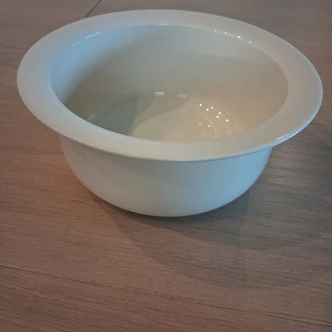 Siistikuntoinen kulho, jonka tilavuus on noin 2,5 litraa..