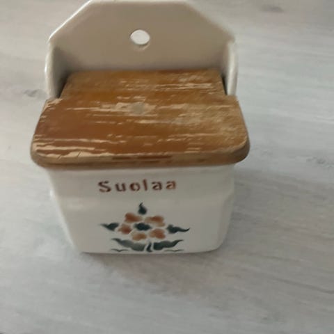 Suola-astia puukannella, Arabia. Ei säröjä, kansi alkuperäinen.