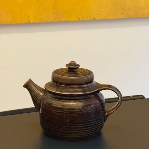 Kaarna kahvikannu, ruskea. Korkeus noin 18cm.