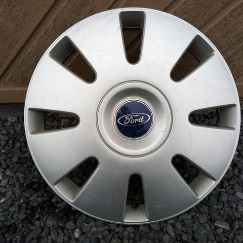 Kuvan alkuperäinen käytetty Fordin pölykapseli (1 kpl). Kaikki kiinnikkeet kunnossa. Tuotteessa on normaalia käytössä tullutta naarmuuntumista (katso kuvista). Ilmeisesti sopii malleihin Focus ja C Max. Halkaisija n. 44 cm.
