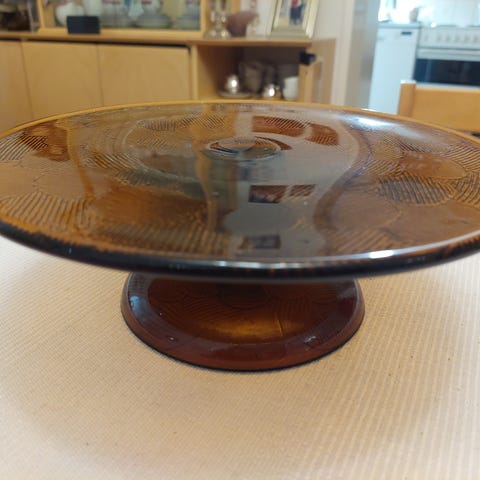 Vihreä jalallinen Miranda kakkuvati. Lähestulkoon käyttämätön. Halkaisija 26,5cm ja korkeus 9cm