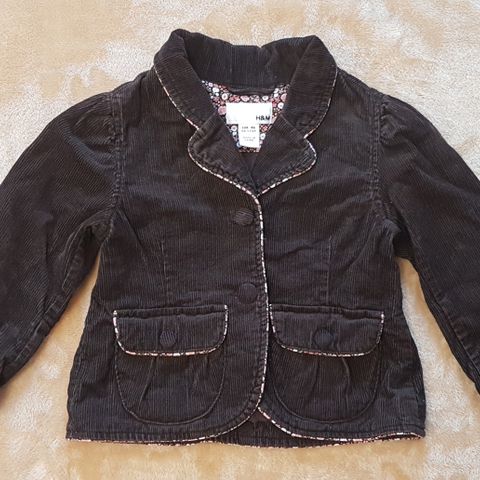 H&M:n hieman pidempi takki kokoa 86. Irrotettava huppu painonapein. Vyötäröllä kiristysnyöri. Avonaiset etutaskut. Edessä vetoketju. Hieman pussimainen helma takahalkiolla. Siisti käytetty kunto.