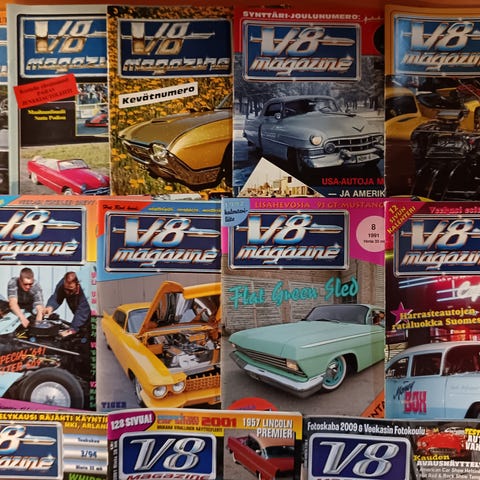 V8 lehden numerot 1, 6, 7 & 8vuodelta 2000. Juliste upuu 8:sta, mutta muissa tallessa.