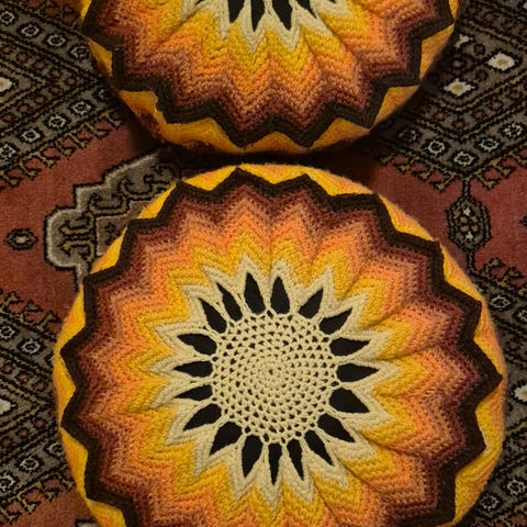 Kätevät istuintyynyt, jotka käyvät myös ulkokäyttöön koska niissä on vettä hylkivä kangas ja haalistuksenestoinen värjäys. Tyynyjen sivussa on vetoketju, joten päälliset voi pestä koneessa. Noilla mustilla nauhoilla tyynyt voi kiinnittää kalusteeseen, jotta ne eivät irtoa tuulessa. Tyynyjä ei ole käytetty kuin pari kertaa, koska ostin ne sisäkäyttöön mutta luovuin ko. kalusteesta jossa niitä käytin hieman. Tyynyt on säilytetty komerossa, joten ne eivät ole haalistuneet tms.