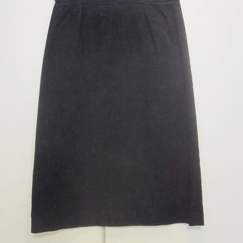 Musta tyylikäs puolihame liukaspintaista, leveyssuuntaan hieman joustavaa satiinia (97 % polyester, 3 % elastaani). Molemmilla sivuilla kiristysnyörit, joilla voi säätää hameen mallia ja istuvuutta. Toisella sivulla piilovetoketju. Kankaassa muutama hyvin huomaamaton kiinniotto, muuten kunto uudenveroinen.