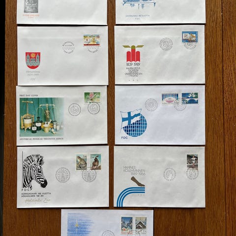 Myydään settinä 9 kpl vuoden 1995 suomalaisia ensipäiväkuoria: