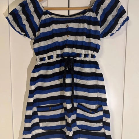 Mekon/tunikan pituus olkapäästä helmaan n. 95 cm. Vyötäröllä kuminauha.