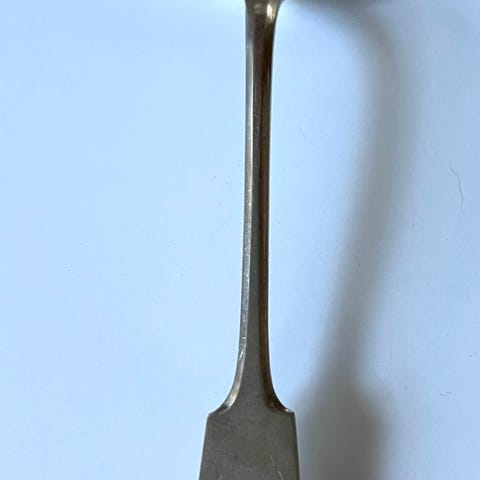Mielestäni hienoja on nuo vanhat Musla-kauhat. Ainakin nuo isommat alpakkaa., koska niissä niin lukee.Pituudet 32, 28 ja 16,5 cm. Hyväkuntoisia, kiillotusta vailla. Isoimmassa ja pienimmässä kauhassa on tyylitellyt nimikirjaimet. Keskimmäisessä ei kaiverruksia. Pienimmässä kauhassa leima, joka kuvassa. Nyt hyvä tilaisuus ostaa edullisesti kauha- asiat kuntoon, "kertaheitolla".