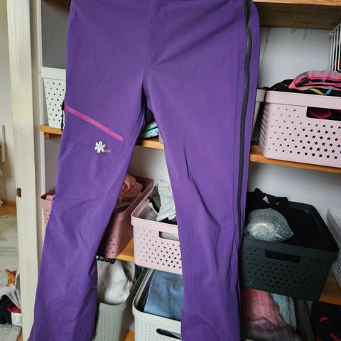 Laadukkaat, tekniset kuorihousut ylös asti avautuvalla sivuvetoketjulla. Erinomaiset ulkoiluun ja lasketteluun. Koko 42.