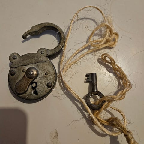 Vanha Björkboda riippulukko / munalukko avaimella. Avain pyörii lukossa, mutta lukko ei aukea, mekanismi on luultavasti jumissa. Nouto ta toridiili Katso myös muut myyntiartikkelini!