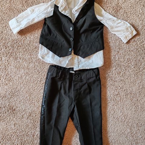 Poikien herrasmiesasu. Juhlasettia kannettu kerran 1 v valokuvauksessa. Koko 62-74.