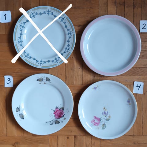 Vintage, lautanen, asetti, leivonnaisille, 4kpl, ruusut-kuvia